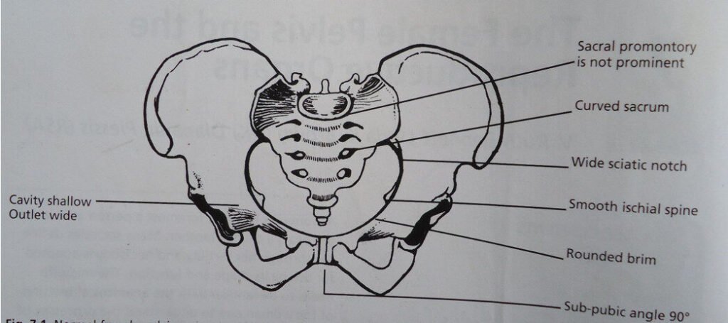 - Symphysis pubis: Should not be narrow, it should be wide to allow the baby to pass through the pelvis.