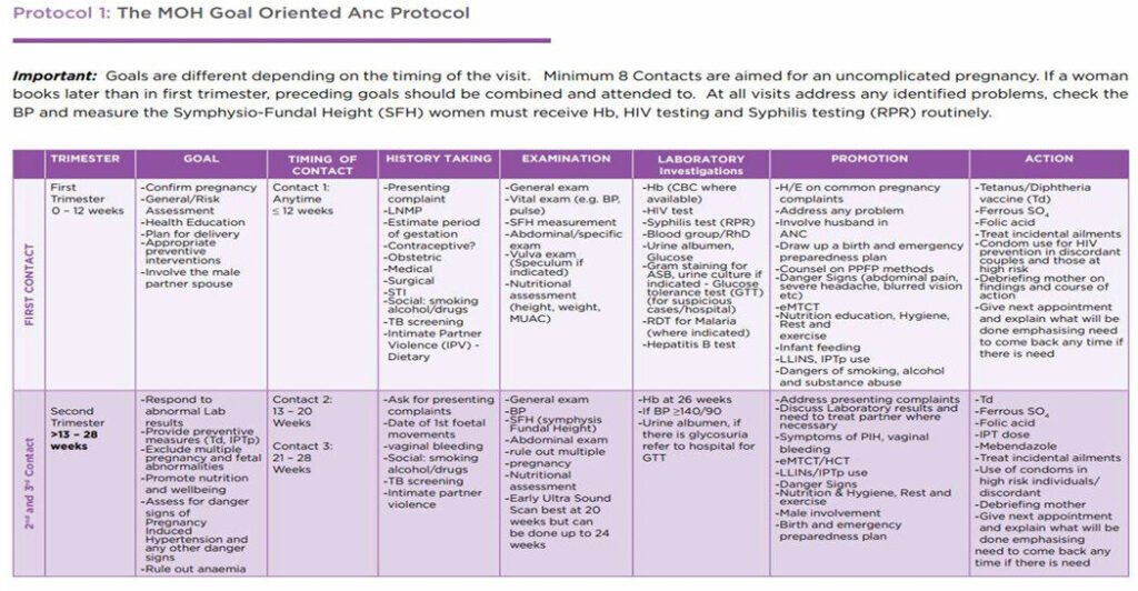 Goal oriented ANC is an approach to ANC that is evidence-based, goal-directed, individualized, woman-centred care and emphasises quality versus quantity of visits and care by skilled providers.