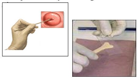 Sample from vagina and cervix applied to slide for cytopathological analysis.