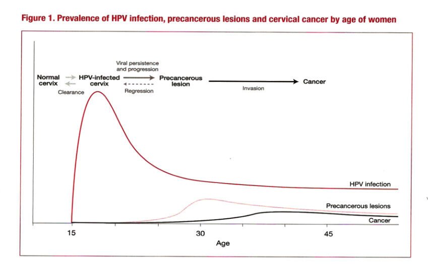 HPV is sexually transmitted, peak of infection at 20-24 yrs.